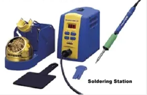 एक सोल्डरिंग स्टेशन में 2 इकाइयाँ होती हैं – एक स्टेशन और एक लोहा। इसमें सोल्डरिंग कार्य की गर्मी की आवश्यकता के आधार पर तापमान को नियंत्रित करने का विकल्प होता है। टांका लगाने वाला लोहा टांका लगाने वाले स्टेशन से जुड़ा होता है। यह पारंपरिक सोल्डरिंग आयरन से बेहतर और अधिक सुविधाजनक है।