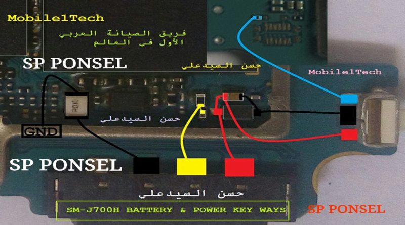 to solve power switch button power key in samsung j7 you can follow steps as given in above diagram.check power button prints points with meter if value is good then replace power switch of samsung j7 button in samsung j7 if value is not good then check all track which is given in red lines.red line print is to show positive print and other one is a ground print.so apply this jumper as given in mobile diagram samsung j7 Power Button Solution.How to turn on Huawei Mate 7 without power button.