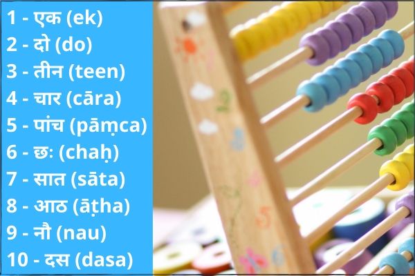 Hindi numbers 1 to 10