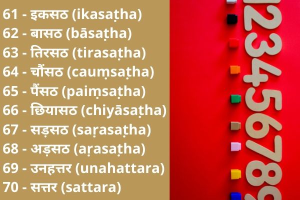 Hindi numbers 61 to 70